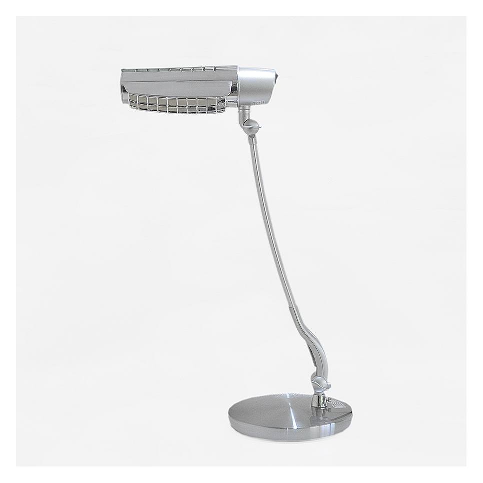 Επιτραπέζιο φωτιστικό γραφείου,με μεταλλική βάση σε νίκελ ματ και μαύρο καπέλο. Με λειτουργικό στήριγμα για το το γραφείο.Ύψος: 52 εκ.Μήκος: 23 εκ.Λαμπτήρες: 1 τεμ.Τύπος Λαμπτήρων: E27(1*20WATT)